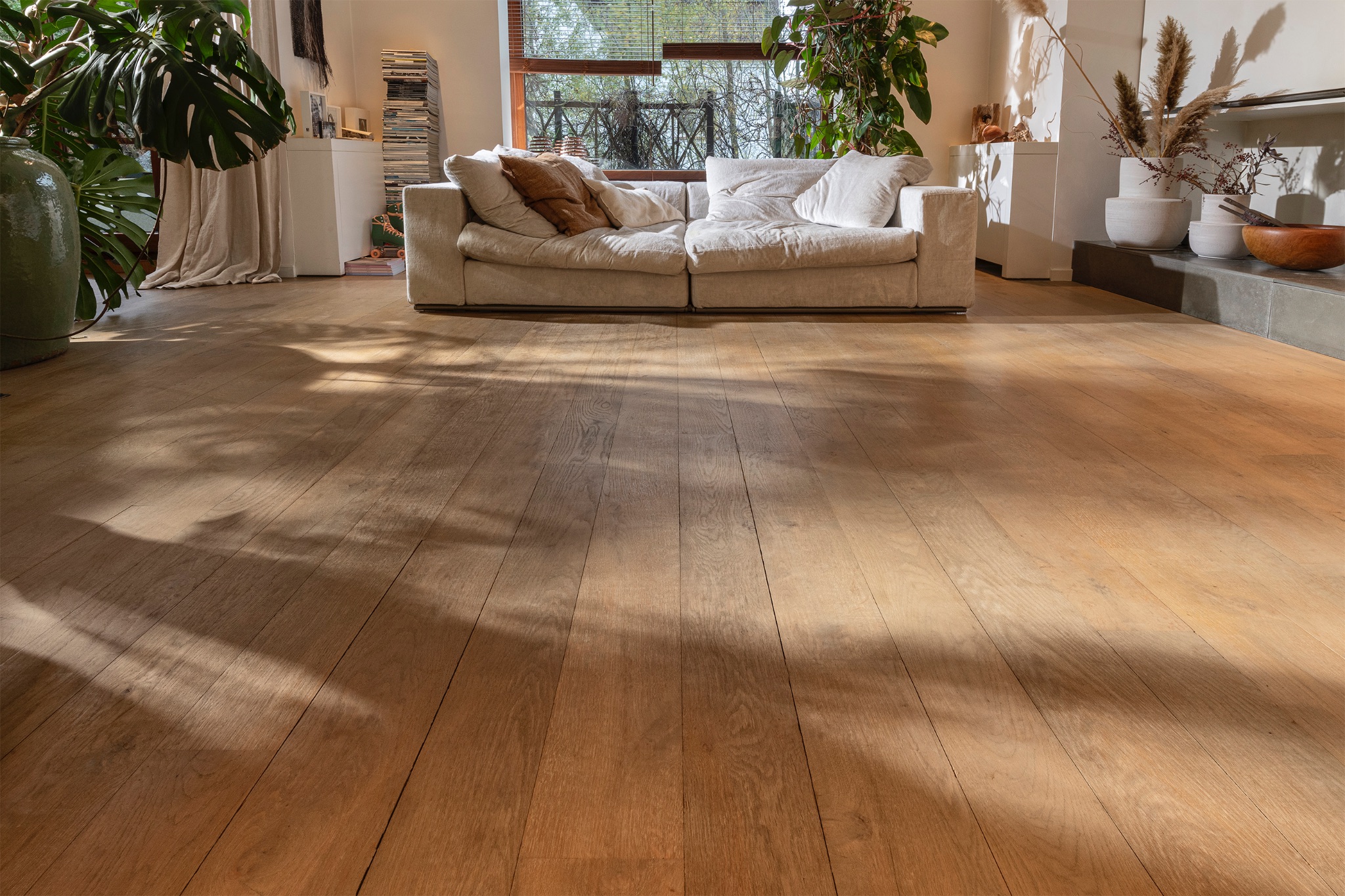 De consument van vandaag kiest steeds vaker voor extra grote vloeren. “We zien een duidelijke verschuiving naar bredere en langere vloerdelen, zowel in planken als in tegels”, zegt Raf Bahbout. Een deel van de verklaring kan liggen bij het feit dat de gemiddelde Belg nu kleiner woont dan pakweg 20 jaar geleden. “We raden klanten die kleiner wonen vaak XXL-vloeren aan omdat die je ruimte optisch vergroten. Ook als je een strakke, moderne toets aan je interieur wil geven, is een lang of breed ogende vloer een perfecte keuze.”